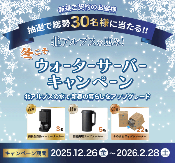 お知らせ・メディア掲載情報一覧 2025/09/29 【重要】ゴールドパック株式会社との合併のお知らせ 2025/06/06 【池田町×AW・ウォーター】災害発生時における飲料水提供に関する協定の締結しました 2025/05/20 大町市の産官学連携-「大町市の水と地下水環境保全協議会」に参画 - 2025/04/15 ★★市野屋とコラボレーションした日本酒 【RYUSUISEN】に、新商品登場!★★ おすすめ情報 ボトルキャップシール集めてプレゼントキャンペーン AW・ウォーターの工場を見学しよう サーバーの取扱方法